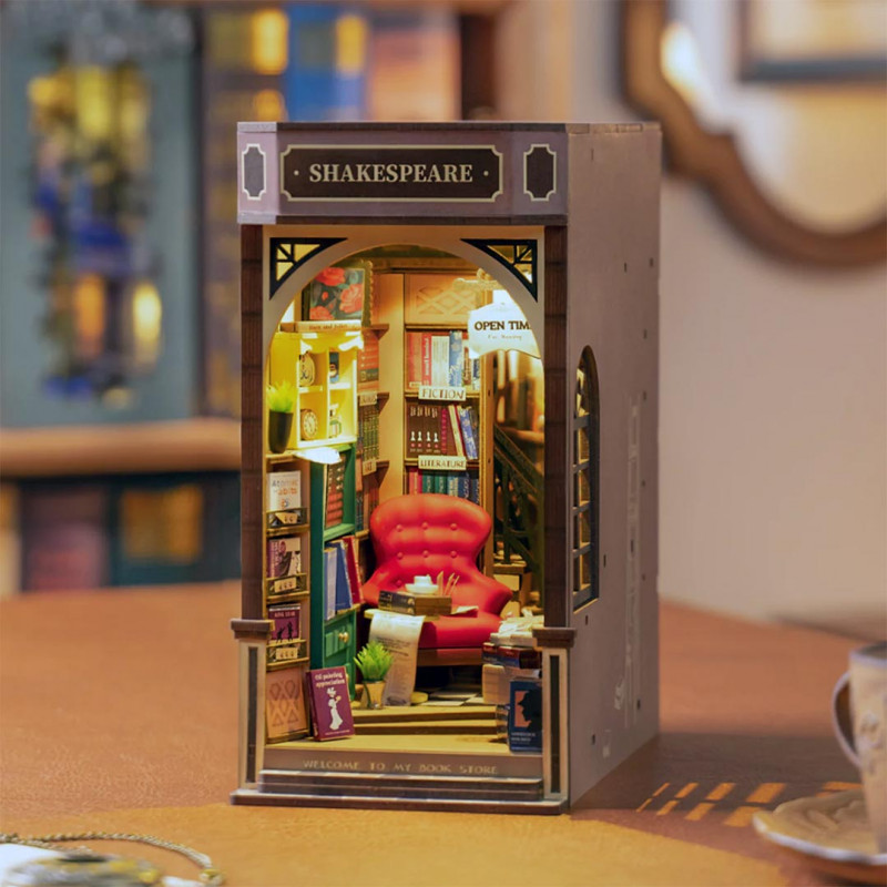 Diese wunderschönen Buchstützen enthalten jeweils eine ultradetaillierte Szene mit Beleuchtung.