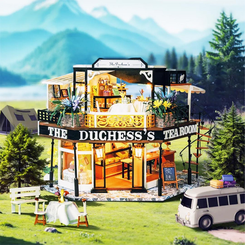 Duchess Tea Room Miniaturhaus oder Puppenhaus, hauptsächlich aus Holz, Papier und Stoff, zum Selbstzusammenbau (Do It Yourself).