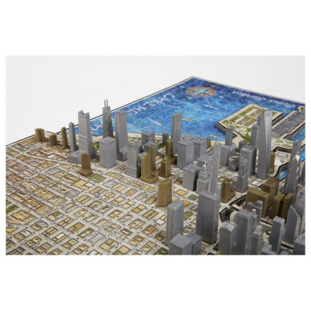 Dieses Puzzle stellt die berühmte Skyline von "The Windy City" nicht nur in drei Dimensionen mit maßstabsgetreuen Gebäudemodellen nach, sondern auch in der vierten Dimension der Zeit - über 100 Jahre Architekturgeschichte.