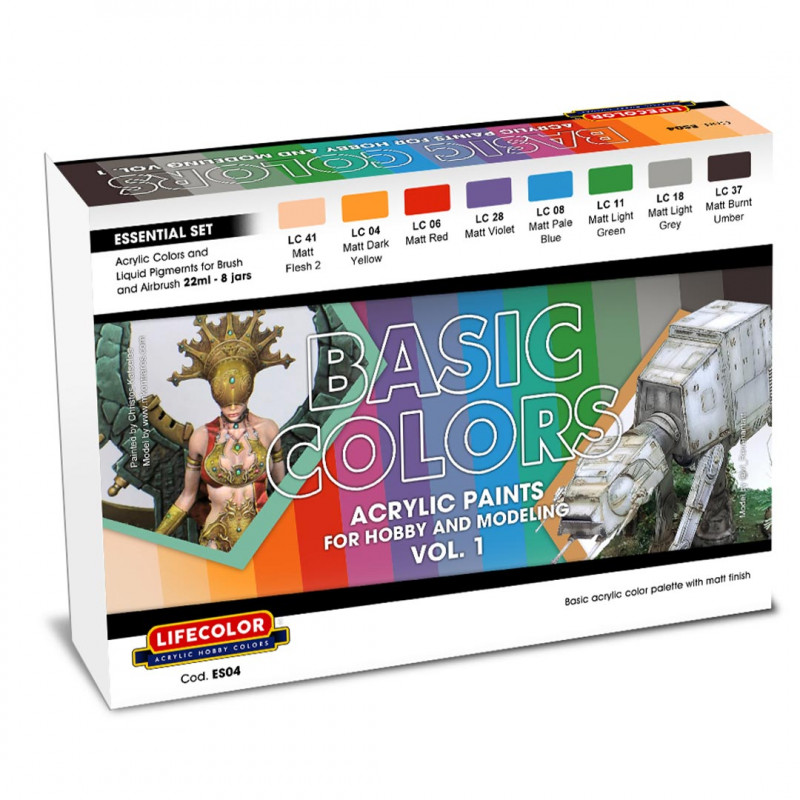 Set mit 8 Grundfarbtönen zum Bemalen Ihrer Modelle.