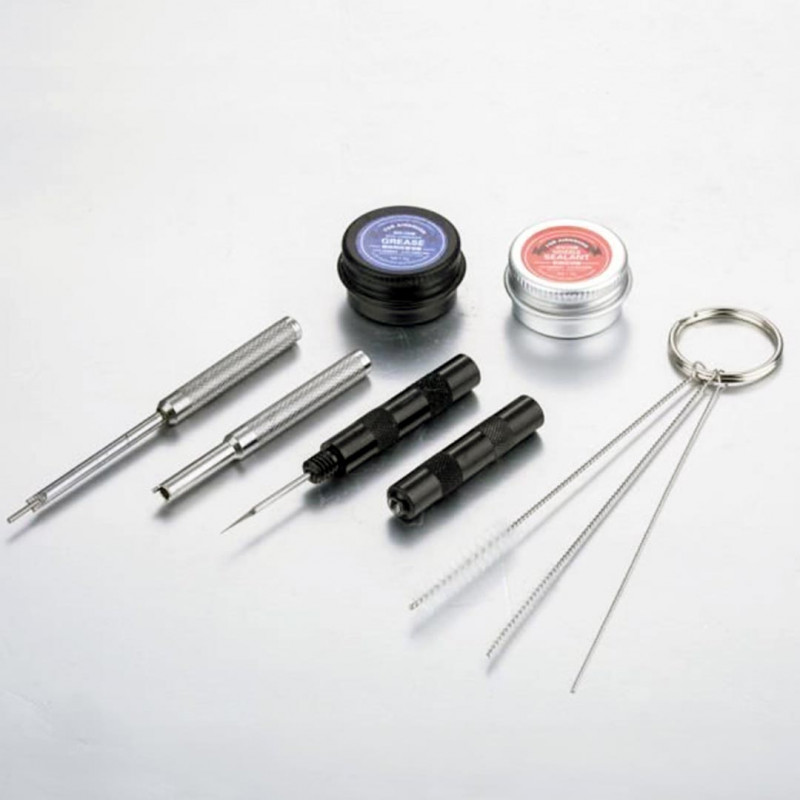 Komplettes Set zur Pflege und Reparatur von Airbrushpistolen.