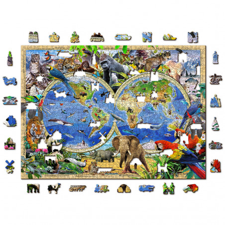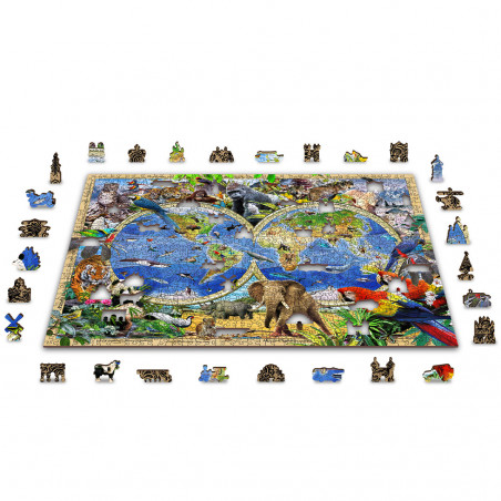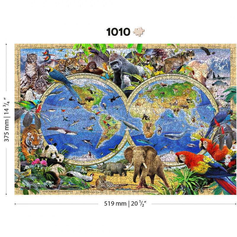Holzpuzzle 1000 Teile „Animal Kingdom Map“ – Eine Reise durch das Tierreich der Welt