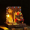 Ein Dekor, das auf einem kleinen Laden basiert, der mit zahlreichen Gegenständen rund um die Magie gefüllt ist, mit Lichteffekten.