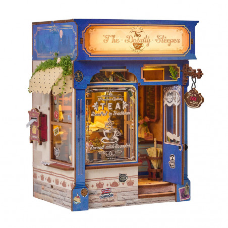 THE DAINTY STEEPER – Buchstütze (Mini Book Nook), hauptsächlich aus Holz, zum Selbstzusammenbauen (Do It Yourself) durch Stecksystem und Kleben.
