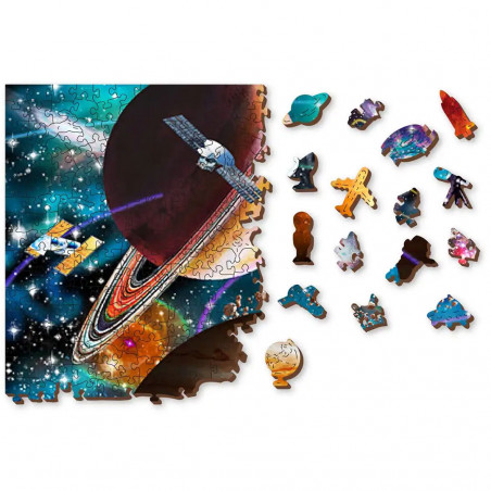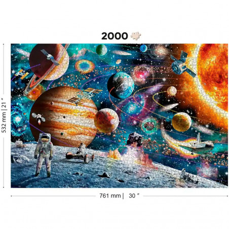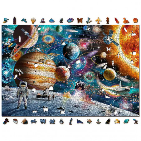 Begeben Sie sich auf ein galaktisches Abenteuer mit dem Holzpuzzle Space Odyssey 2000 Teile, einem beeindruckenden Jigsaw Puzzle, das Sie in die unendlichen Weiten des Universums entführt. Entdecken Sie leuchtende Planeten, funkelnde Sterne und einen einsamen Astronauten, der die Schönheit des Kosmos bewundert.