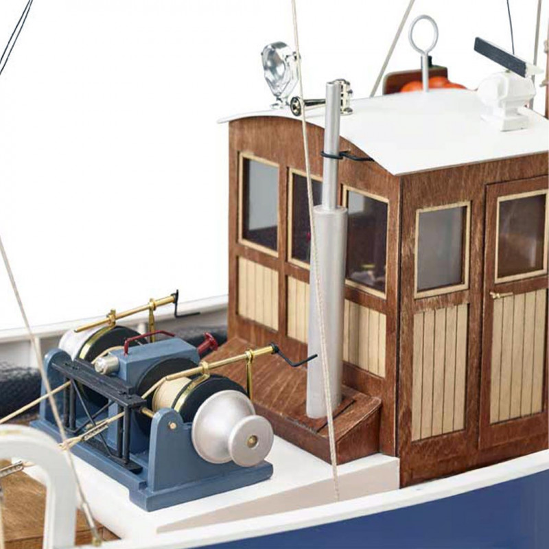 Die Elemente des Steuerstandes, des Aufbaus und der Zugänge sind originalgetreu nachgebildet, um ein sehr realistisches navigierendes Modellschiff Bausatz zu schaffen. Die mitgelieferten Masten und Zubehörteile vervollständigen das traditionelle Aussehen dieses Fischereischoners.