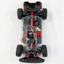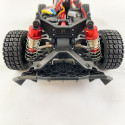 Das Auto wird mit einem 2S-Akku (7,4 Volt) geliefert, kann aber auch mit einem optionalen 3S-Akku (11,1 Volt) für mehr Leistung ausgestattet werden, was das Fahren auf sehr rutschigen Oberflächen anspruchsvoller macht. Um die Kontrolle über das Auto zu erleichtern, steht eine zusätzliche Option zur Verfügung, um die Motorleistung auf 70% zu begrenzen, die über den Sender der Fernsteuerung aktiviert werden kann.