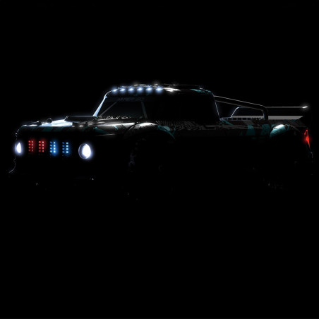 • Für Spaß ist das Fahrzeug mit einem kompletten Beleuchtungsset ausgestattet, das es Ihnen ermöglicht, verschiedene Konfigurationen über die Fernbedienung zu wählen.