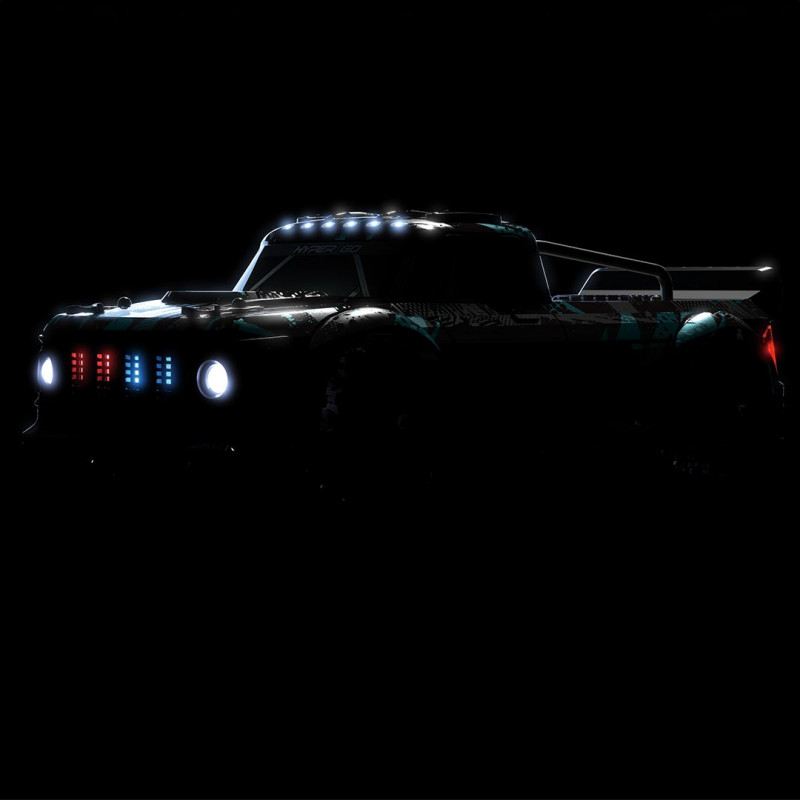 • Für Spaß ist das Fahrzeug mit einem kompletten Beleuchtungsset ausgestattet, das es Ihnen ermöglicht, verschiedene Konfigurationen über die Fernbedienung auszuwählen.