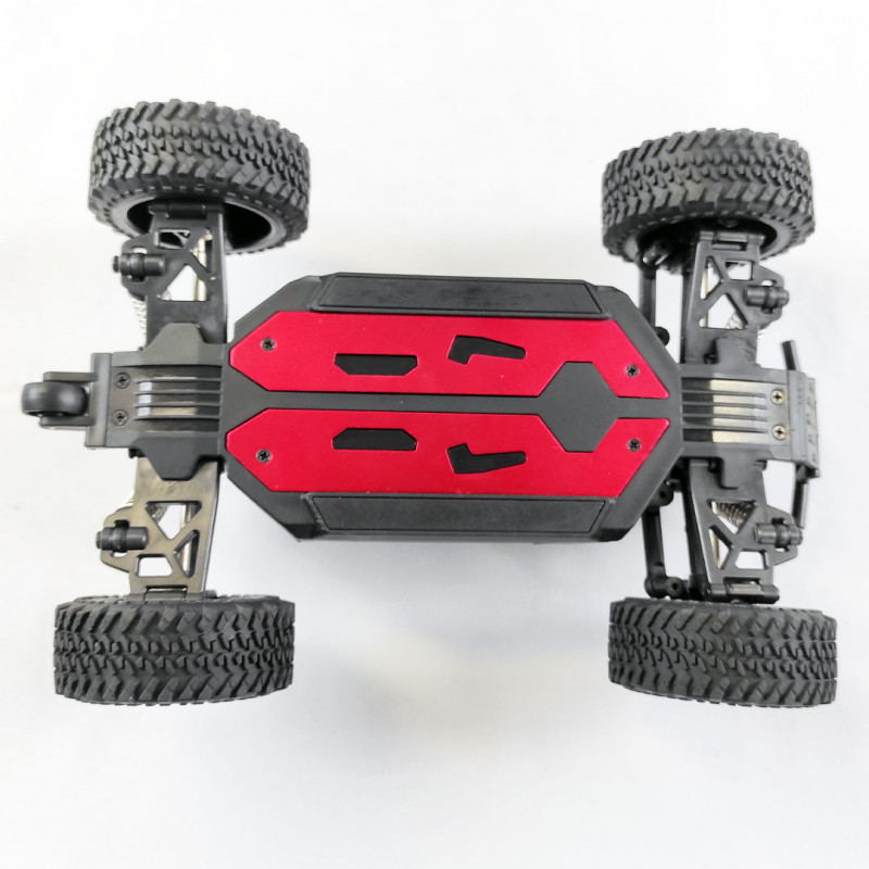 Die Fernsteuerung, die im 2,4-GHz-Frequenzband arbeitet, ermöglicht eine Reichweite, die mit größeren Modellen im Maßstab 1:10 vergleichbar ist.