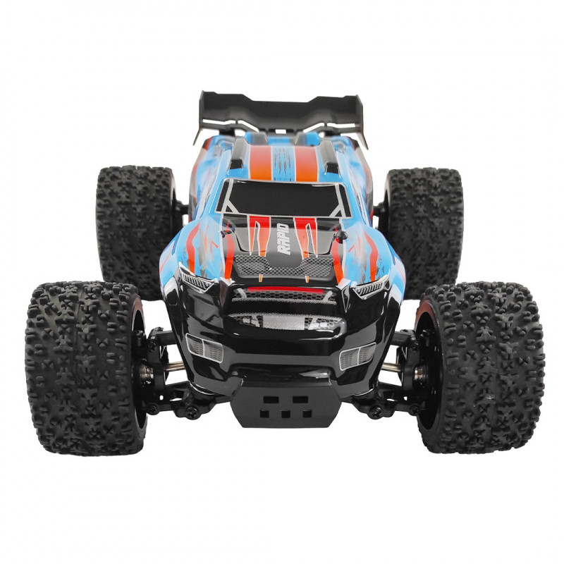 Die Fernsteuerung, die im 2,4-GHz-Frequenzband arbeitet, ermöglicht eine Reichweite, die mit der von größeren Modellen im Maßstab 1:10 vergleichbar ist.