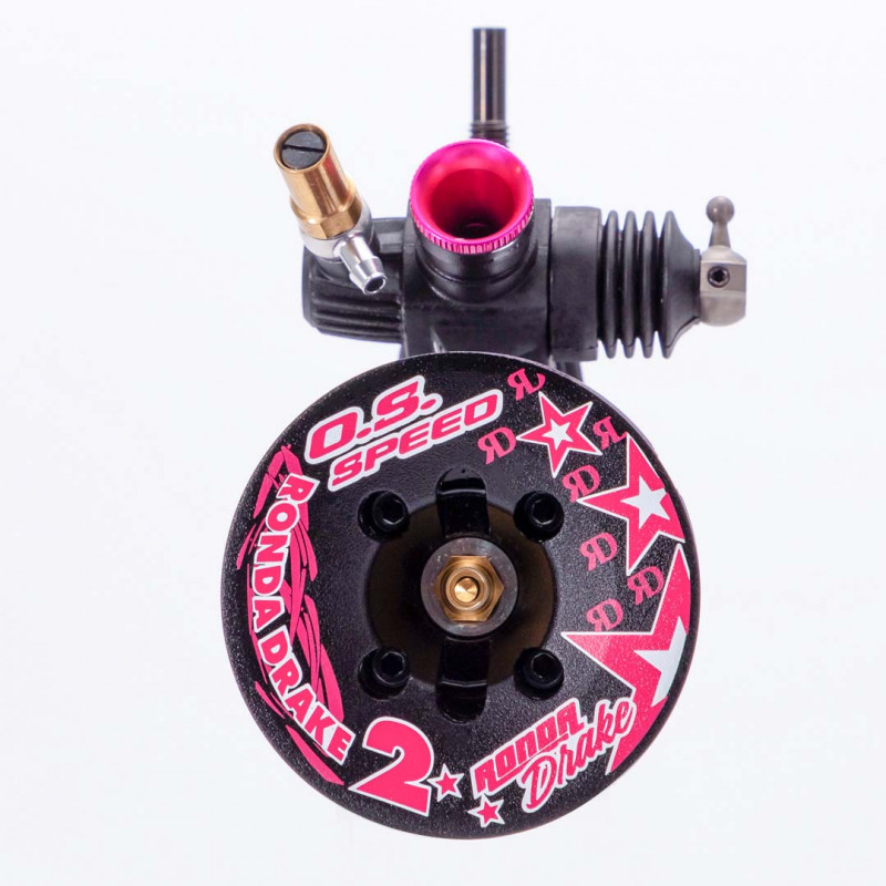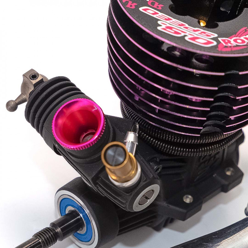 Das zweite Modell des von Mr. RONDA DRAKE, der Ehefrau von Mr. ADAM DRAKE, die mit Mr. ADAM DRAKE, einem professionellen Weltklasse-Buggyfahrer, an den großen Buggy-Rennen teilnimmt, produzierten Modells ist jetzt erhältlich. Der neue Zylinderkopf verbesserte die Rennleistung, indem er das Gewicht reduzierte und den Schwerpunkt senkte. Der neue Zylinderkopf ist in zwei Farben, pink und schwarz, eloxiert. Durch die Verwendung eines Kurbelgehäusedeckels mit einem Antifriktionseinsatz wird der Verschleiß der Pleuelstange verringert. Zwei pink eloxierte Venturis sind im Lieferumfang enthalten, wobei der 6,5 mm Durchmesser für Buggys und der 7,5 mm Durchmesser für Truggys geeignet ist.
