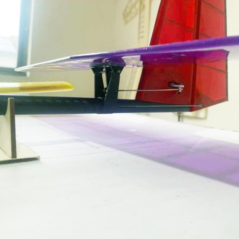 - Flügel und Leitwerke aus Holzstruktur, präzise lasergeschnittene Teile.