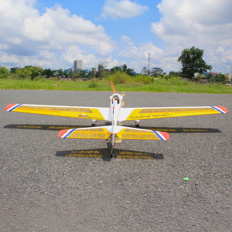 Bringen Sie Ihr Können auf die nächste Stufe mit dem Super Weekend Special, einem wunderschön konstruierten, großen R/C-Sportflugzeug, das auf sanfte Manövrierbarkeit und berauschende Kunstflugleistungen ausgelegt ist. Mit seiner großen Flügelfläche und der leichten Balsaholzkonstruktion vermittelt dieses Flugzeug ein Gefühl des Schwebens in der Luft, was es zu einem Vergnügen macht, es bei niedrigen Geschwindigkeiten zu fliegen, während Sie bereit sind, jederzeit sehr energische Manöver durchzuführen.