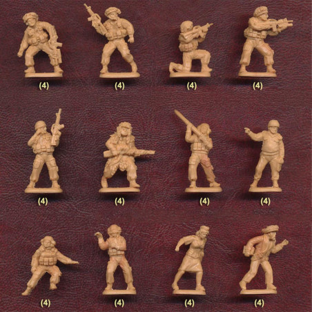 Die Boxen enthalten in der Regel mehrere Dutzend Figuren mit verschiedenen Posen (Kampf, Marsch, Schießen, Kommando), was die Erstellung realistischer Szenen begünstigt.