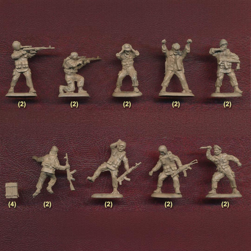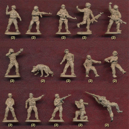 Die Boxen enthalten in der Regel mehrere Dutzend Figuren mit verschiedenen Posen (Kampf, Marsch, Schießen, Kommando), was die Erstellung realistischer Szenen fördert.