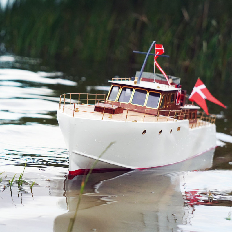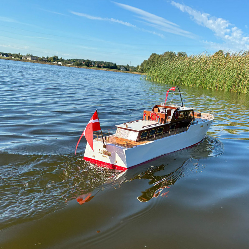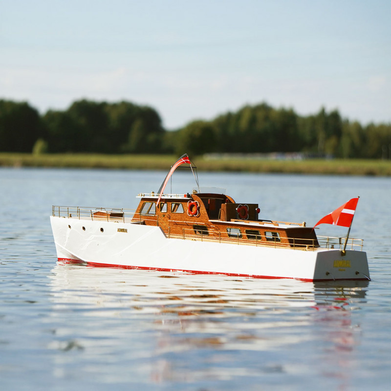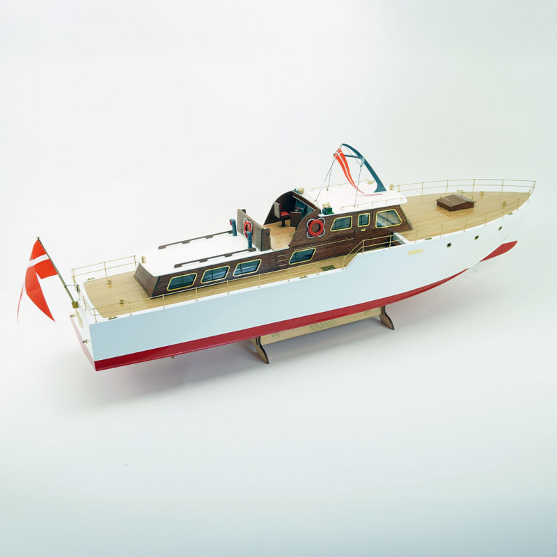 Inspiriert vom berühmten Modell Admiral von DMI (Dansk Modelflyve Industri) aus dem Jahr 1965 verkörpert dieses Freizeitboot die ganze Eleganz der Motoryachten der 1950er und 1960er Jahre. Mit einer Länge von etwa einem Meter beeindruckt es sowohl als Ausstellungsstück als auch auf dem Wasser und bietet eine majestätische Präsenz auf dem Wasser und einen unvergleichlichen Retro-Charme.