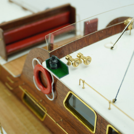 Der Aufbau aus Mahagonisperrholz, die Fensterrahmen aus fotogeätzten Messing und die zahlreichen luxuriösen Details zeugen von der Sorgfalt, mit der jedes Element gestaltet wurde. Billing Boats führt hier den Geist der großen traditionellen Modelle fort und ermöglicht es Modellbauern gleichzeitig, das Modell mit einem Funksteuerungssystem auszustatten, um es tatsächlich fahren zu lassen.