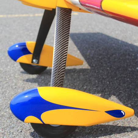 Hauptfahrwerk aus Kohlefaser in Kombination mit robusten 5,5-Zoll-Rädern aus PU-Gummi, die für wiederholte Landungen auf Gras und Asphalt ausgelegt sind.