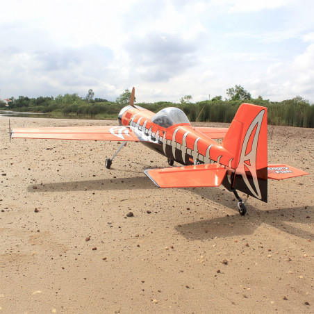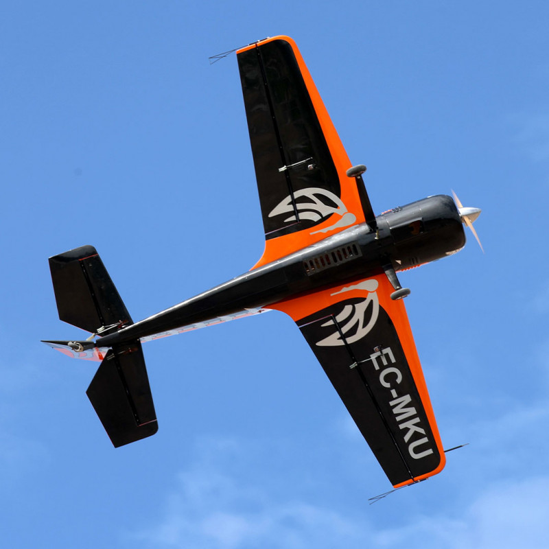 Figur / Präzision: Seine fast quadratischen Proportionen, sein langer Rumpf und seine großen Steuerflächen verleihen ihm eine felsenfeste Flugbahn und eine ausgezeichnete Rollrate – allesamt wesentliche Elemente für den IMAC.