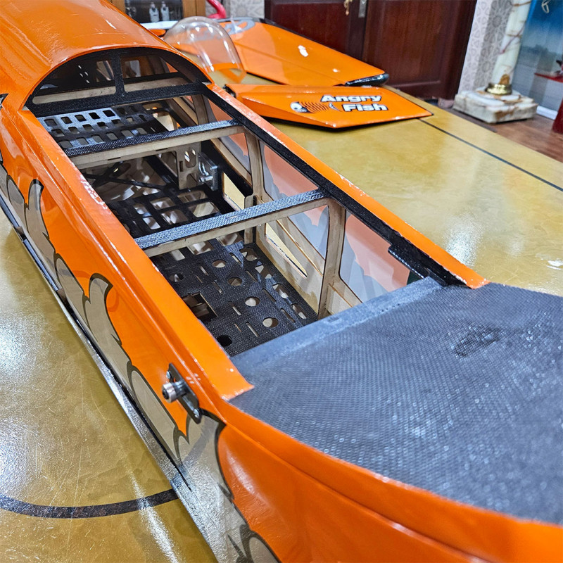 Die präzise aus hochwertigem Balsa- und Sperrholz gefertigte Zelle ist in den stark beanspruchten Bereichen des Rumpfes und der Tragflächen mit Kohlefaserrohren verstärkt, wodurch ein optimales Gleichgewicht zwischen geringem Gewicht, Agilität, struktureller Festigkeit und Langlebigkeit erreicht wird. Das schwarze Glasfaserlaminat, das auf kritischen Bereichen des Sperrholzes aufgebracht ist, erhöht die Steifigkeit und Stoßfestigkeit zusätzlich, erleichtert das präzise Laserschneiden und minimiert elektromagnetische Störungen für die Bordelektronik, wodurch eine zuverlässige und dauerhafte Leistung gewährleistet wird.