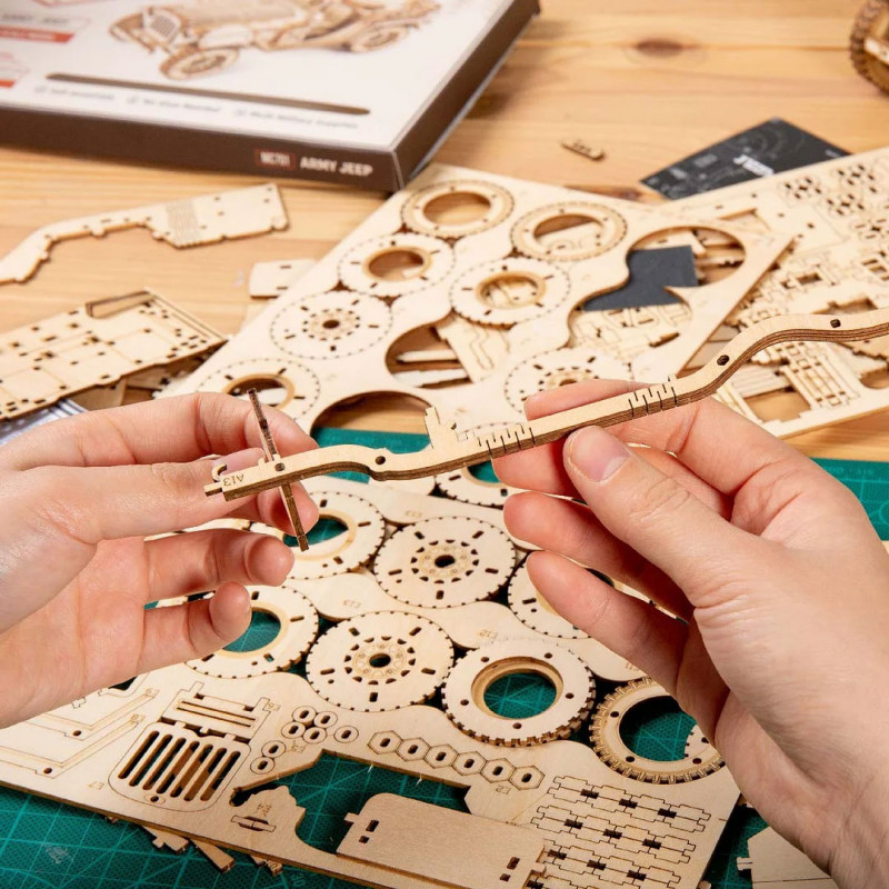 Alle Teile werden sorgfältig mit dem Laser aus hochwertigem Holz vorgeschnitten.