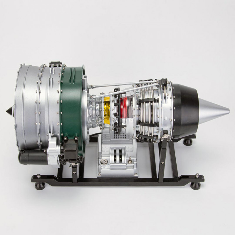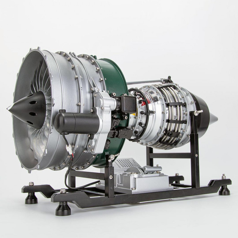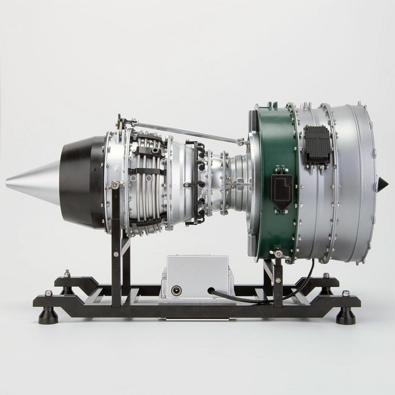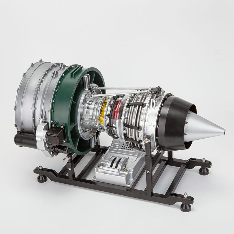 Auf seinem robusten Ständer mit Gashebel montiert, wird dieses Miniaturmotor-Modell zu einem echten Sammlerstück. Der Turbinenrotor kann realistisch gedreht werden, was bei jeder Vorführung für faszinierende visuelle Effekte sorgt.