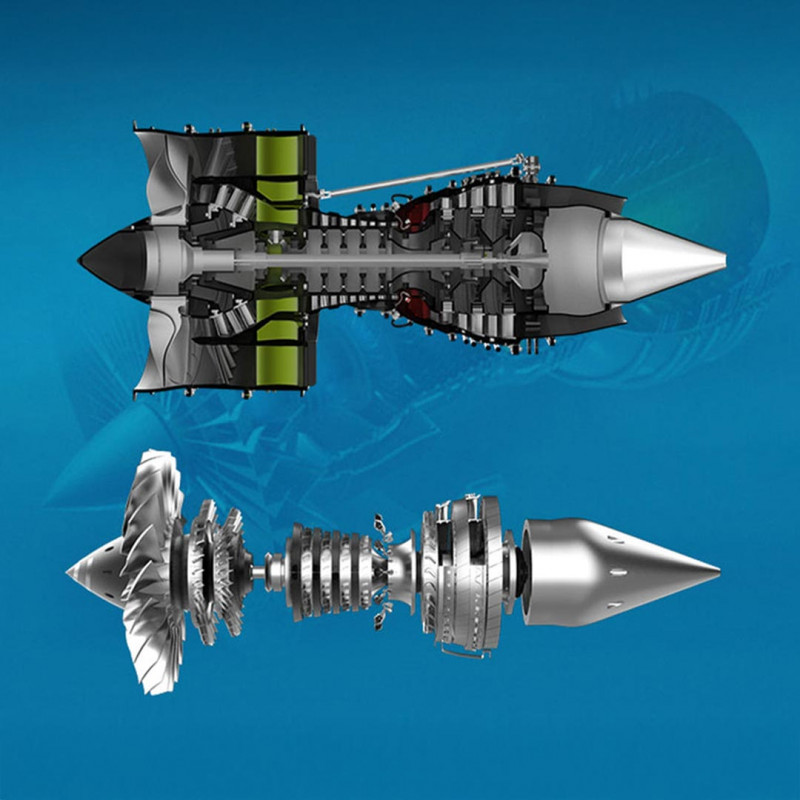 Entdecken Sie eines der fortschrittlichsten Metallmodelle, die je entwickelt wurden: ein originalgetreuer Miniatur-Zweistromreaktor.