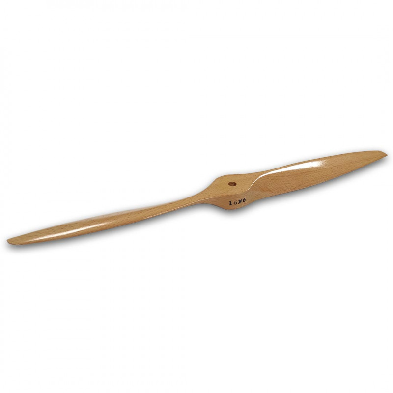 Hochwertiger zweiflügeliger Holzpropeller 16x6. Zur Verwendung mit 2- oder 4-Takt-Motoren.