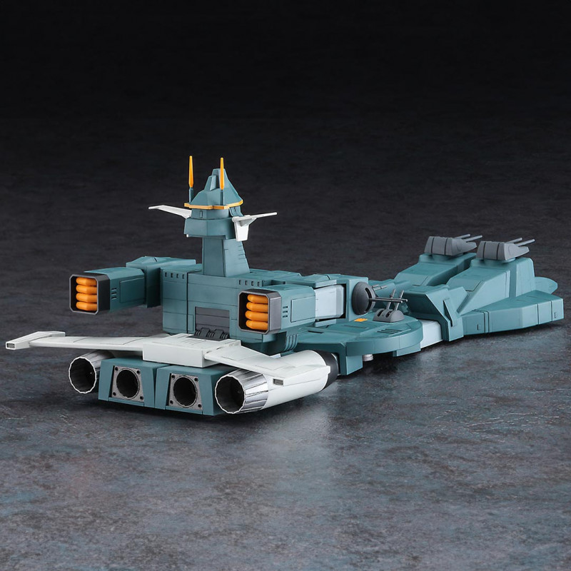 Dies ist das Raumschiff der 3. Generation des Anime Battle Mecha Xabungle. Dieses Kunststoffmodell kann ohne Klebstoff zusammengebaut werden, und der Farbaufwand wird durch das Formen der Teile in 6 Farben reduziert.