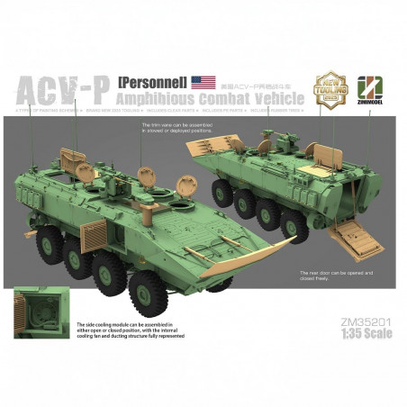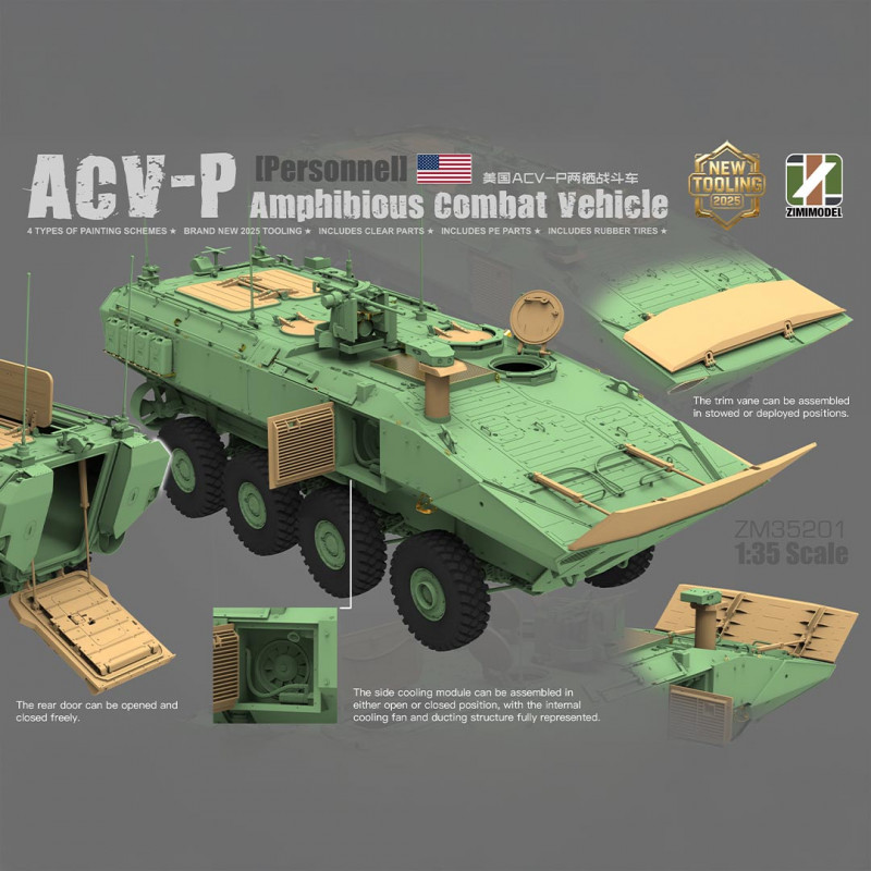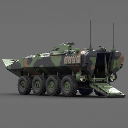 Heute ist der ACV-P offiziell in den Kampfeinheiten des US Marine Corps im Einsatz. Er nimmt regelmäßig an operativen Einsätzen und realistischen Übungen teil, was ihn zu einem der repräsentativsten modernen amphibischen gepanzerten Fahrzeuge macht, die derzeit im Einsatz sind. Dieses Militärmodell im Maßstab 1/35 ist direkt von diesen operativen Versionen inspiriert.