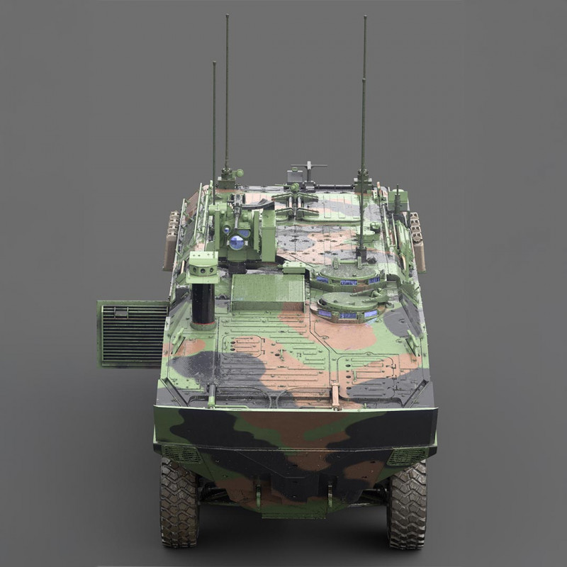 Das Ergebnis ist ein Plastikmodell mit einer klaren Montagelogik, präziser Passform der Teile und ausgezeichneter struktureller Kohärenz. Die Montagezeit ist optimiert, ohne den Detailgrad zu beeinträchtigen. Die Montage bleibt zugänglich und bietet fein strukturierte Oberflächen, mehrschichtige Strukturen und eine getreue Wiedergabe der technischen Merkmale des ACV-P am gesamten Fahrzeug.