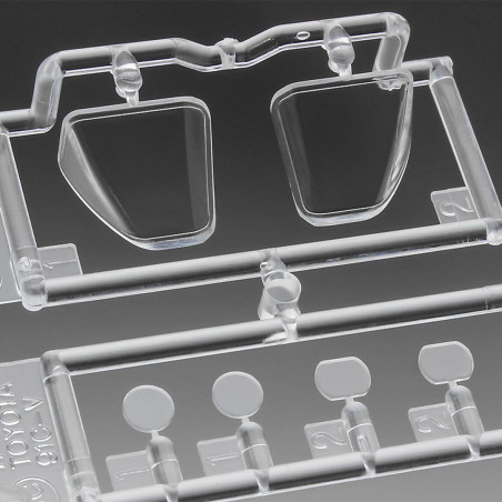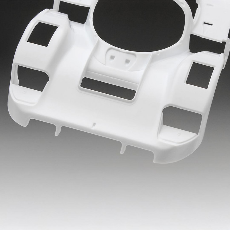 Scheinwerferreflektorfläche, Scheinwerfer mit 4 Glühbirnen, Rennnummernlampe, Obere vordere Kotflügelpaneele, Frontspoiler, Scheinwerfergläser, Scheinwerferlinsen.