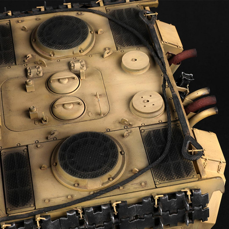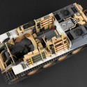 Der Innenraum dieses Panzers ist vollständig detailliert und es besteht die Möglichkeit, interne Teile durch die enthaltenen transparenten Teile sichtbar zu lassen.