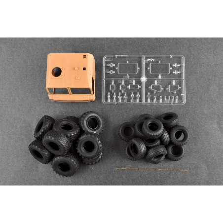 Plus de detailsModell des Lastwagens BAZ-6403 aus Kunststoff mit Anhänger ChMZAP-9990-071 1:35