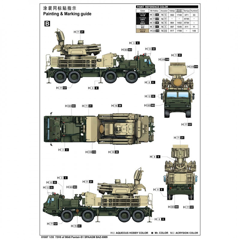 Plus de detailsModell des russischen LKW 72V6 oder 96K6 Pantsir-S1 Flugabwehrsystems BAZ-6909 1:35
