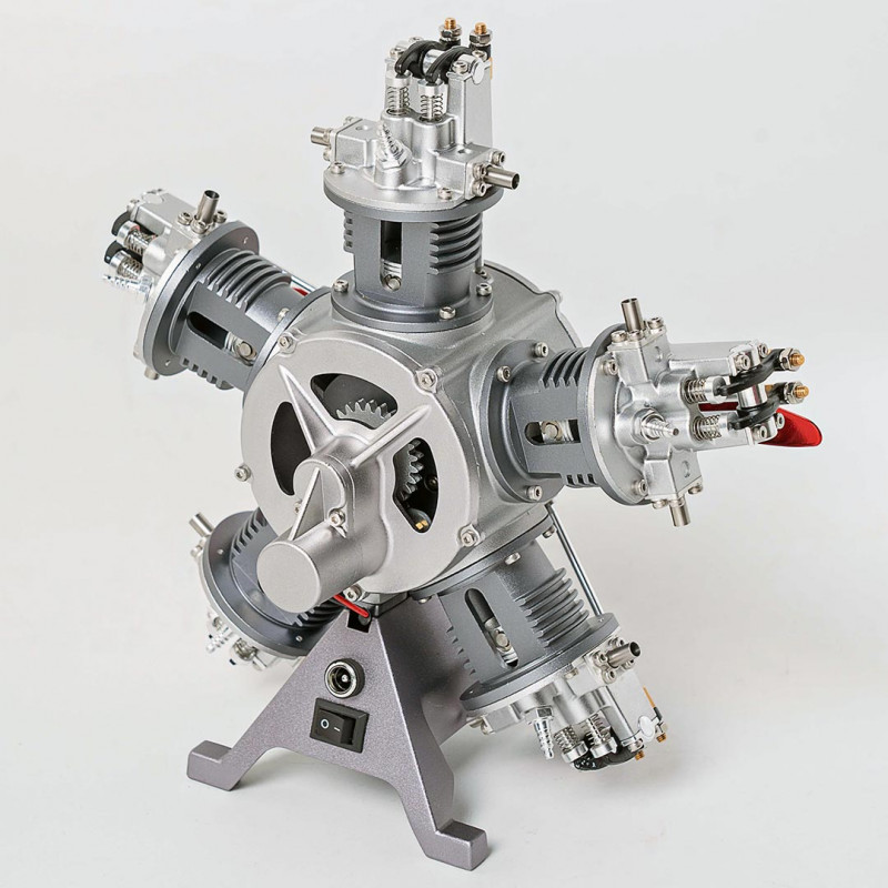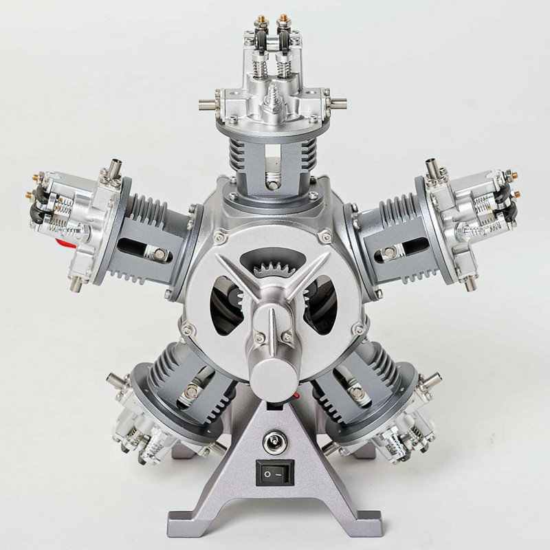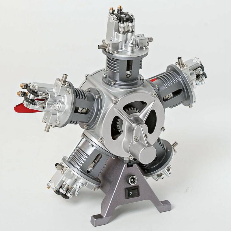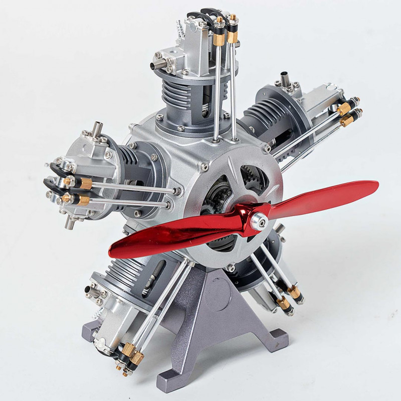 Wie ein echter Motor: Ein elektrischer Starter treibt das Schwungrad an, das die Kurbelwelle dreht. Diese überträgt die Bewegung auf die Pleuel und Kolben, während die Stoßstangen die Ventile mit synchronisierter Präzision betätigen. Sogar der Propeller dreht sich, angetrieben von der Kurbelwelle - ein beeindruckend realistischer Miniaturmetallmotor.