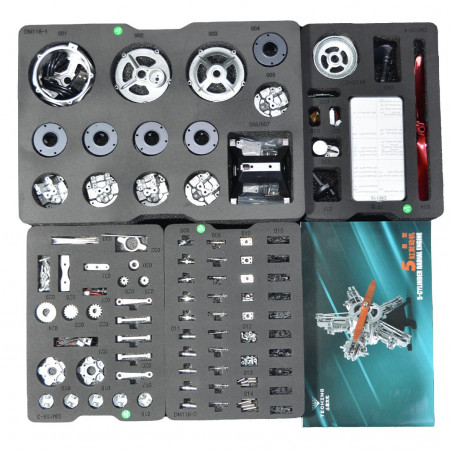 Vollständiges Zubehör und sorgfältige Präsentation:: Das Kit enthält über 230 hochwertige Teile. Jede Komponente ist beschriftet, in maßgeschneiderten Schaumstoffhaltern verpackt, um Beschädigungen zu vermeiden. Eine klare und farbig illustrierte Aufbauanleitung ist enthalten. Obwohl dieser Miniaturmotor komplex ist, ermöglichen die detaillierten Anweisungen eine zugängliche, präzise und lohnende Montage.