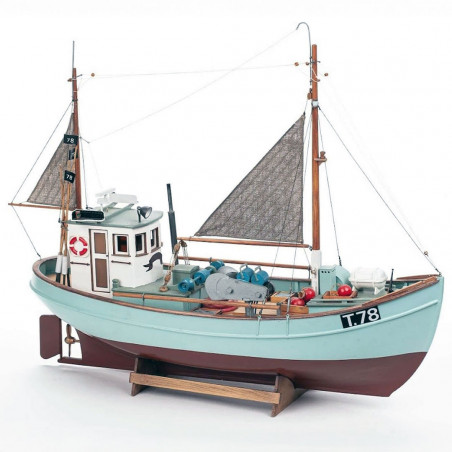 Le NORDEN est un bateau typique de cabotage que l'on peut voir naviguer le long de la côte ouest du Danemark. Ce caboteur fut construit à l'origine vers 1930 par des armateurs régionaux des petites villes du Danemark : Klitmdier et Vorupor. Il présenta une amélioration considérable pour les bateaux de cette époque. Depuis ce temps, aucune modification appréciable ne lui fut effectuée bien que ces bateaux soient devenus plus longs et soient maintenant équipés d'une timonerie abritée d'une bâche. Construction par demi-coques séparées et collées ensuite l'une à l'autre. La boîte contient toutes les pièces en bois découpées au laser et les accastillages. Les modèles ”Billing Boats” de la série ”600” ont la particula- rité d’être construits à plat par demi-coques qui sont ensuite assemblées l’une contre l’autre. Cette méthode facilite la construction, ces modèles sont donc particulièrement desti- nés aux débutants.