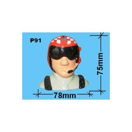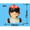 Pilote civil très léger avec casque, peint gris et rouge pour avions R/C. Largeur 78 mm, Hauteur 75 mm, Profondeur 44 mm.