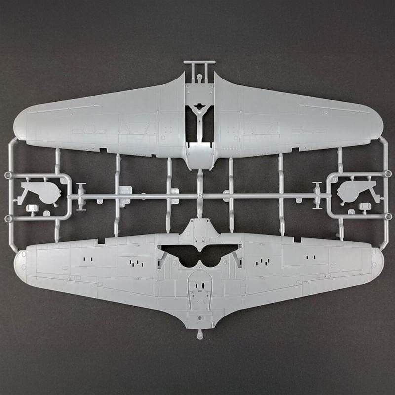 In der Schachtel finden Sie einen Modellbausatz, der die Oberflächen des Flugzeugs realistisch wiedergibt: durchhängendes Gewebe, feine Panel-Linien, bündige und pilzförmige Nieten (wie beim Original). Der Innenraum des Cockpits und die Fahrwerksschächte überraschen durch den Reichtum an Konstruktionsdetails und Ausstattung.