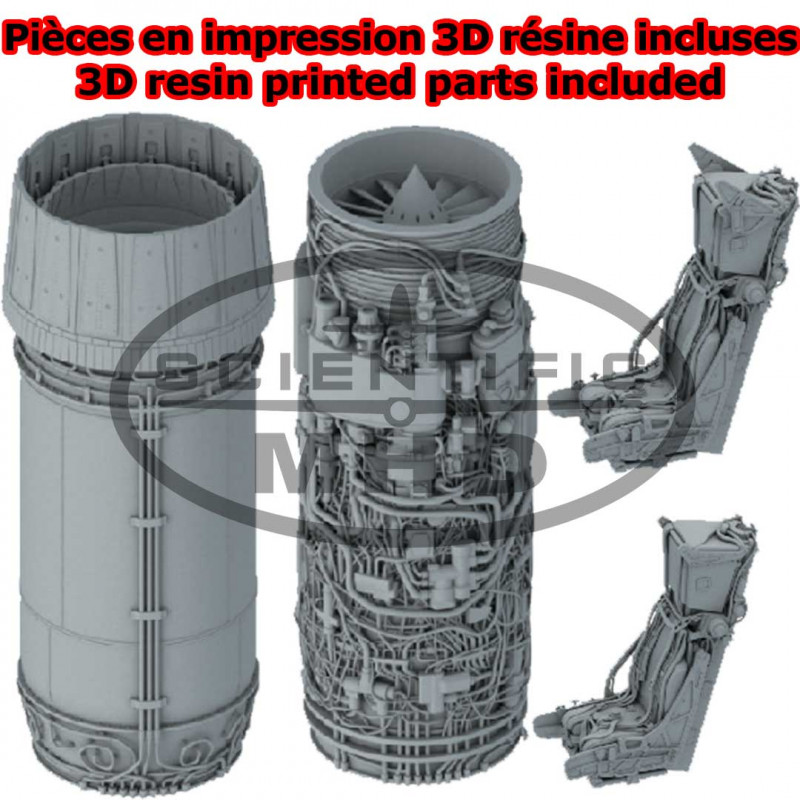 Die neueste 2024-Version des Modells wurde mit einem Satz Harzteile, einschließlich der beiden Sitze, verbessertPiloten, der Reaktor und seine Düse sehr detailliert.
