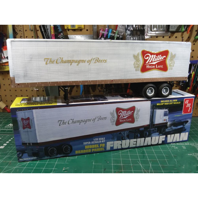 Plastikmodell des Fruehauf 40-Fuß-Anhängers "Miller Bier" 1:25