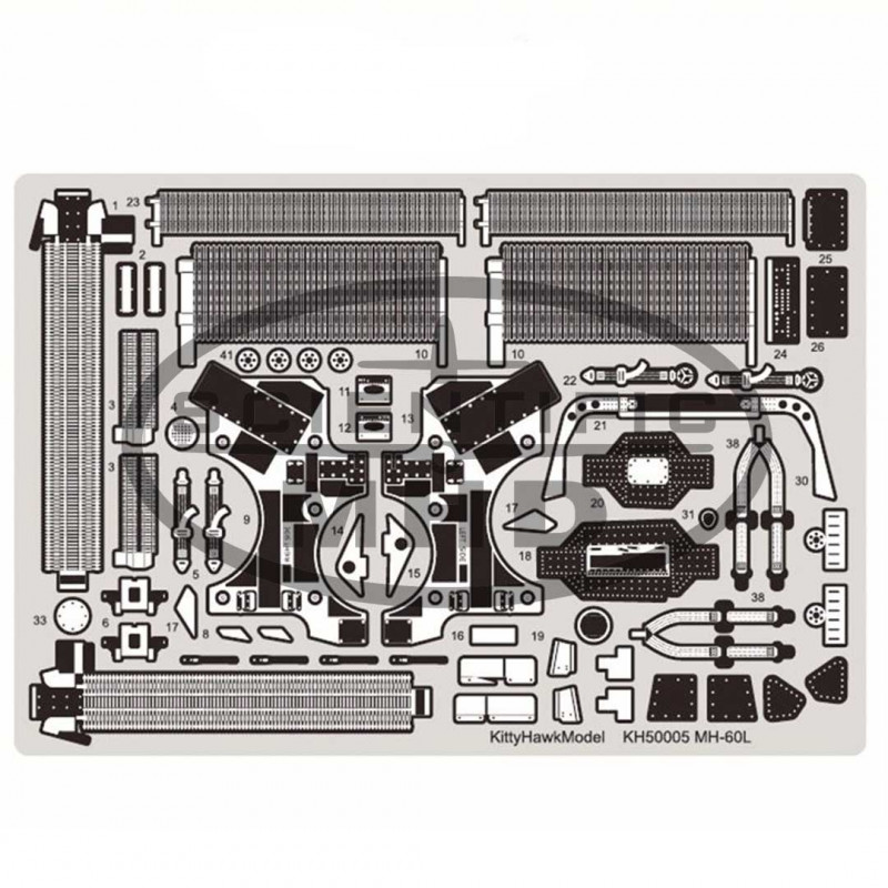 Plastikmodell des Hubschraubers MH-60L "BLACK HAWK" der berühmten Marke KITTY HAWK im Maßstab 1:35 zum Zusammenbauen.