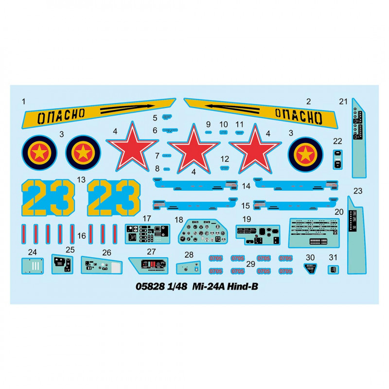 Plus de detailsPlastikmodell des Hubschraubers Mi-24A Hind-B 1:48