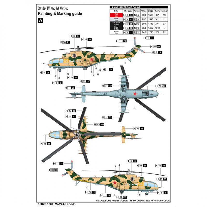Plastikmodell des Hubschraubers Mi-24A Hind-B 1:48