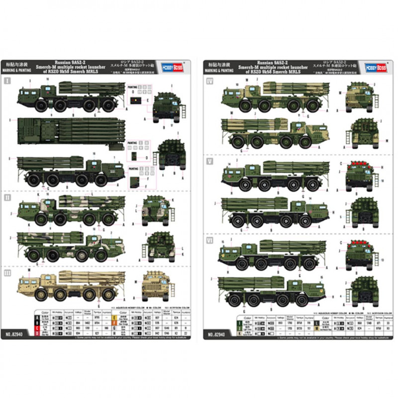 Plus de detailsPlastikmodell des russischen Lastwagens 9A52-2 Smerch-M Raketenwerfer RSZO 9k58 1:72