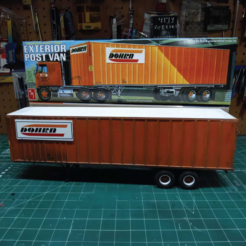 Plastikmodell eines amerikanischen Anhängers zum Zusammenkleben und Bemalen.