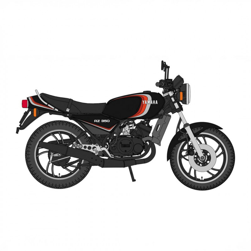 Plastikmodell eines Motorrads Yamaha RZ350 (4U0) 1982 Schwarz 1:12