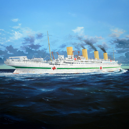 Modell des Schwesterschiffs der berühmten TITANIC, das während des Krieges von der Armee beschlagnahmt worden war.